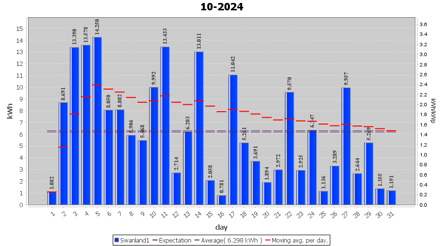 | 11-10-2024 | kWh | W/Wp | 13.433 | 4000 | 3.4 | 6.213 | £ 0.00 | 6.9 | |