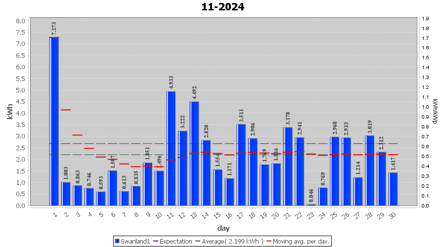 | 1-11-2024 | kWh | W/Wp | 7.273 | 4000 | 1.8 | 3.364 | £ 0.00 | 11.0 | |