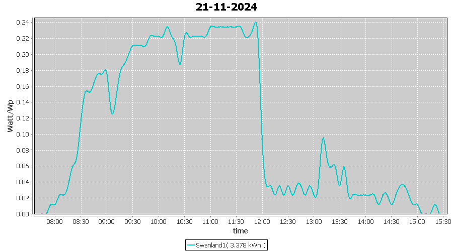 | 21-11-2024 | kWh | W/Wp | 3.378 | 4000 | 0.8 | 1.562 | £ 0.00 | 5.1 | |
