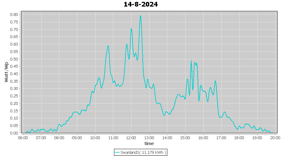 | 14-8-2024 | kWh | W/Wp | 11.179 | 4000 | 2.8 | 5.170 | £ 10.82 | 2.7 | |
