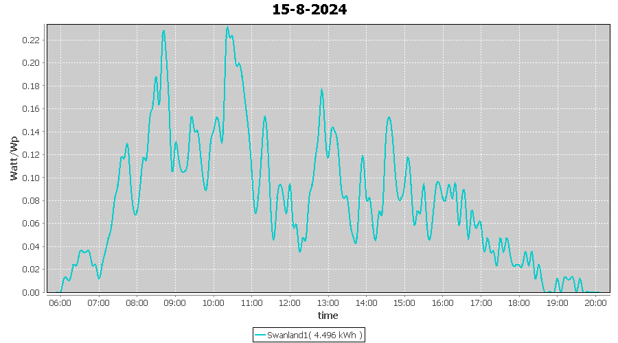 | 15-8-2024 | kWh | W/Wp | 4.496 | 4000 | 1.1 | 2.079 | £ 4.35 | 1.1 | |