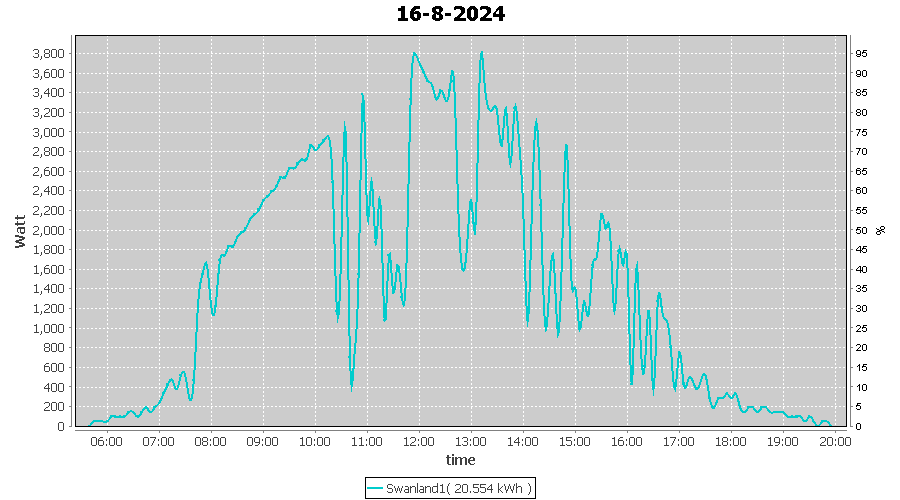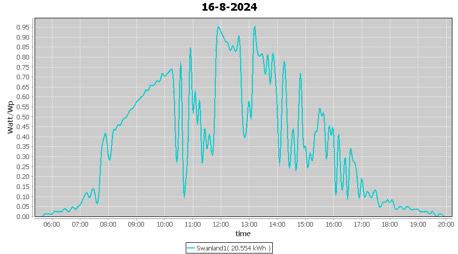 | 16-8-2024 | kWh | W/Wp | 20.554 | 4000 | 5.1 | 9.506 | £ 19.88 | 4.9 | |