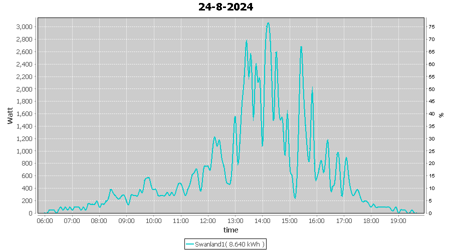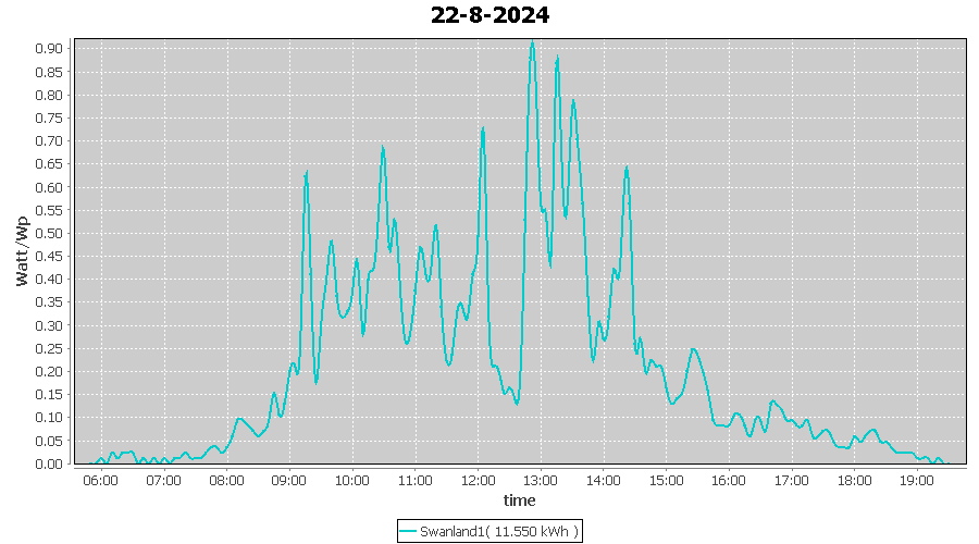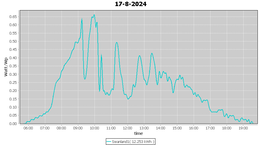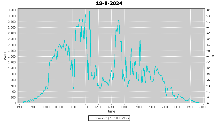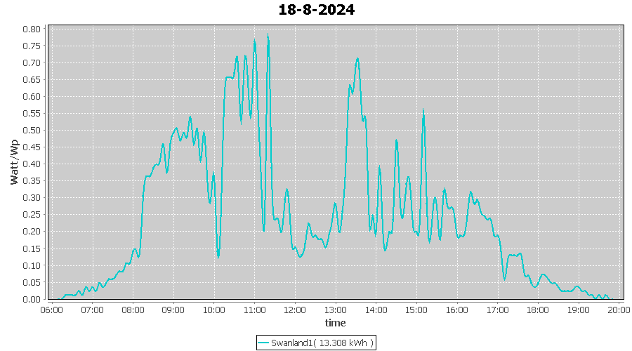 | 18-8-2024 | kWh | W/Wp | 13.308 | 4000 | 3.3 | 6.155 | £ 12.87 | 3.2 | |