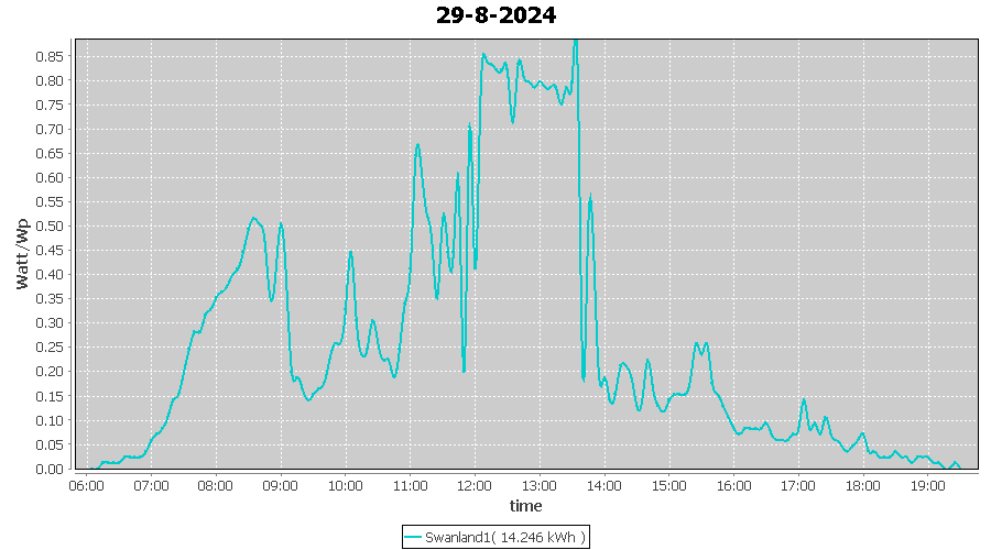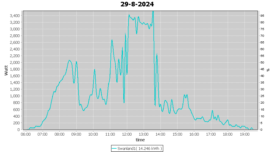 | 29-8-2024 | kWh | W/Wp | 14.246 | 4000 | 3.6 | 6.589 | £ 13.78 | 3.4 | |