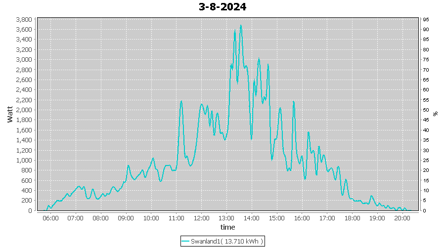 | 3-8-2024 | kWh | W/Wp | 13.710 | 4000 | 3.4 | 6.341 | £ 13.26 | 3.3 | |