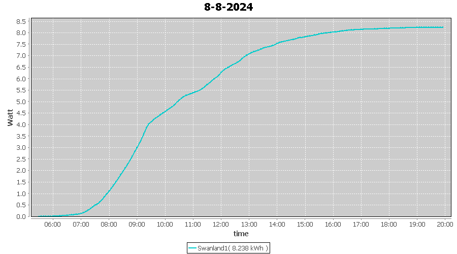 | 8-8-2024 | kWh | W/Wp | 8.238 | 4000 | 2.1 | 3.810 | £ 7.97 | 2.0 | |